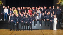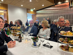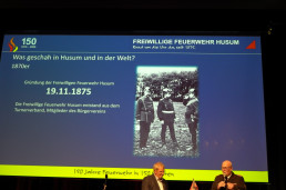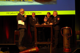 Am Nachmittag kamen dann die „Ausflügler“ aus Haithabu zurück und es ging schnell in die Unterkünfte zum Umziehen; denn um 17:30 Uhr an diesem Freitagabend hieß es dann „150 Jahre Feuerwehr in 150 Minuten“. Alle Feuerwehrkameradinnen und -kameraden in Uniform und die Partnerinnen in schicker Abendgarderobe gingen zum NCC (NordseeCongressCentrum) – hier fand der große und offizielle Festabend statt.