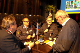 Eine weitere Talkrunde wurde mit den o.g. Gästen dann von Memminger bzw. bayerischer Seite durch stellv. LJFW Andreas Land gemacht. Hier wurden uns Talkgästen Fragen zu dieser Freundschaft der Feuerwehren gestellt. Radiomoderator Carsten Kock vom Radio Schleswig-Holstein (RSH) erfreute sich besonders an dem Memminger Dialekt.