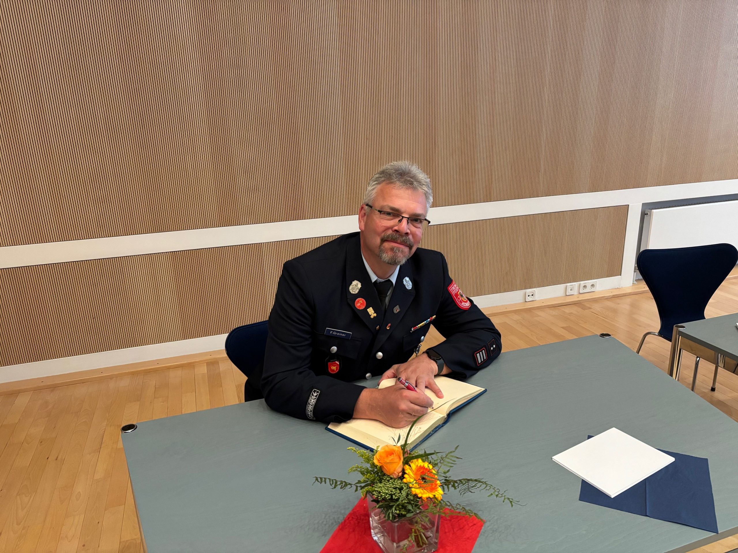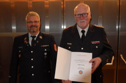 Eine besondere Auszeichnung erhielt auch Wehrführer Frank Dostal für seinen unermüdlichen Einsatz und die Verdienste in der Verbindung der Bayerischen Jugendfeuerwehr Memmingen und Schleswig-Holsteinischen Jugendfeuerwehr Husum.