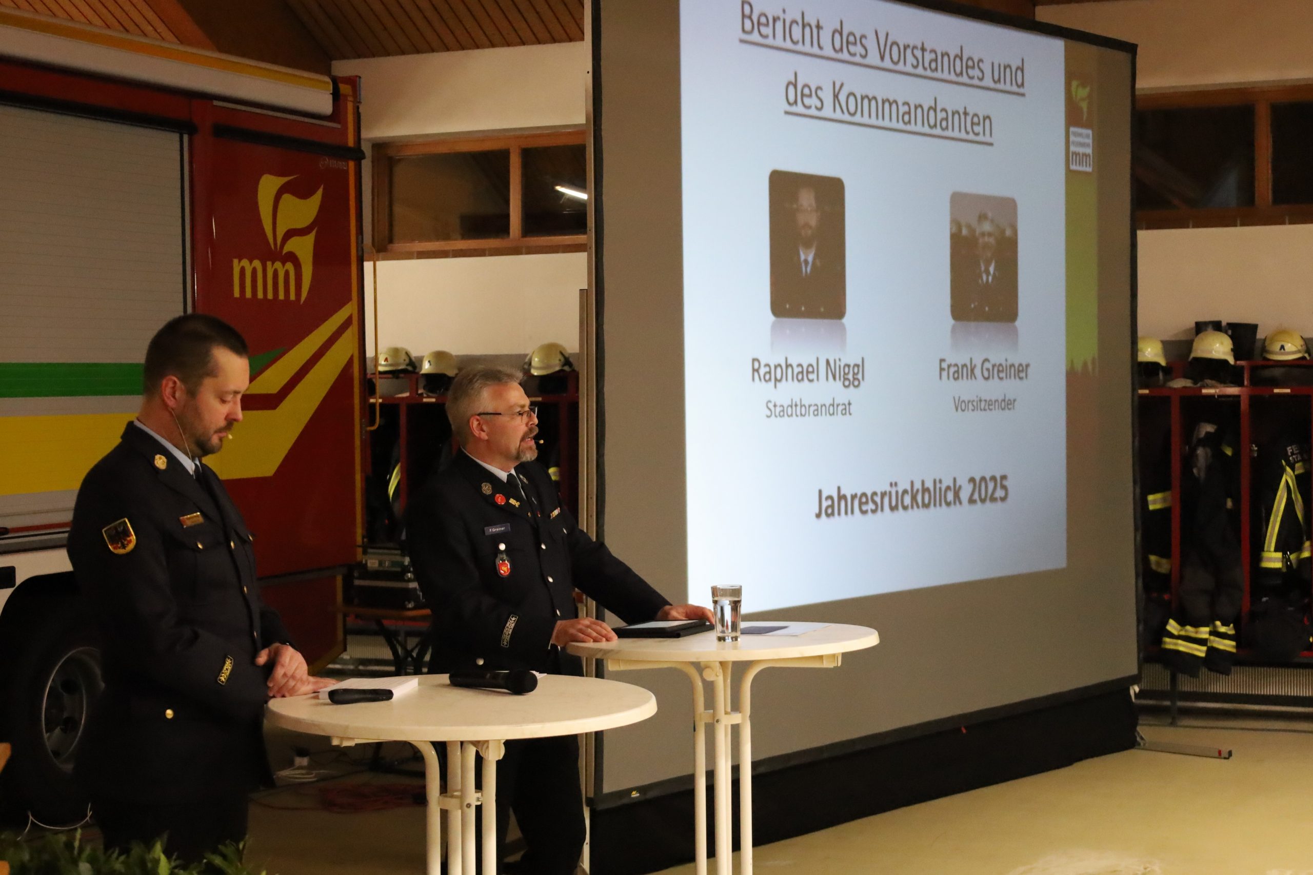 Frank Greiner und Raphael Niggl ließen die Vereins- und Einsatzaktivitäten des vergangenen Jahres Revue passieren.