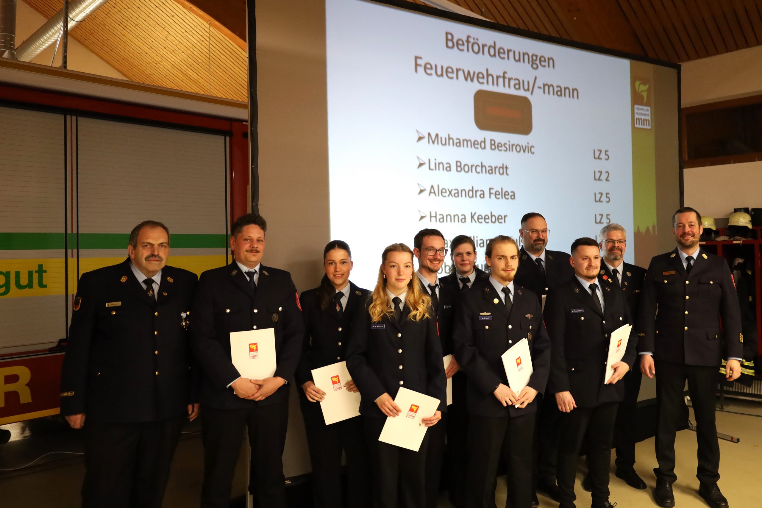 - Feuerwehrmann/-frau: M. Besirovic (LZ 5) | L. Borchardt (LZ 2) | A. Felea (LZ 5) | H. Keeber (LZ 5) | M. Krauß (LZ 2) | T. Kugelmann (LZ 4) | A. Petrich (LZ 3) | M. Schleicher (LZ 4) | A. Spitzhüttl (LZ 4)